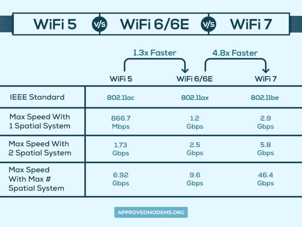 WiFi 7 VS 6 Difference, Compatibility and Speed Services. The WiFi 7 standard became official at the beginning of 2024, only 4 years after the previous standard, WiFi 6E Learn more about what's changed and what's stayed the same, and decide if WiFi 7 is right for you.